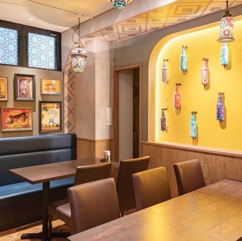 店内はおしゃれで広々とした空間が自慢です☆装飾や照明などのアートが飾られた店内は、まるで海外に来たかのような雰囲気に包まれます。